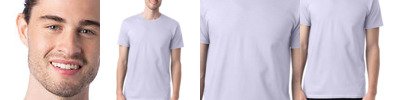4.5 oz., 100% polyester; Moisture management jersey; Ribbed collar; Taped shoulder to shoulder with EasyTear™ label; Double-needle hemmed sleeves and bottom;