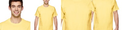 - Ribbed crew neck (97% ringspun cotton, 3% spandex)